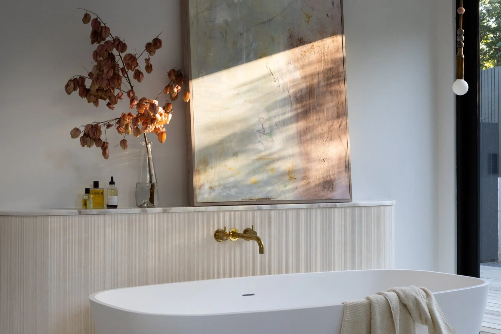 At Design 4 Corners, we’ve always believed that art is more than a visual experience—it’s an intimate dialogue between the creator and the observer. This is exactly what drew us to the work of El Lovaas. Her creative process radiates a unique energy that infuses each piece with depth and meaning. Before every creation, El writes a positive message on the canvas. Although it is eventually covered by layers of her mixed media techniques, the message remains a silent part of the artwork, subtly infusing your home with optimism and intention.